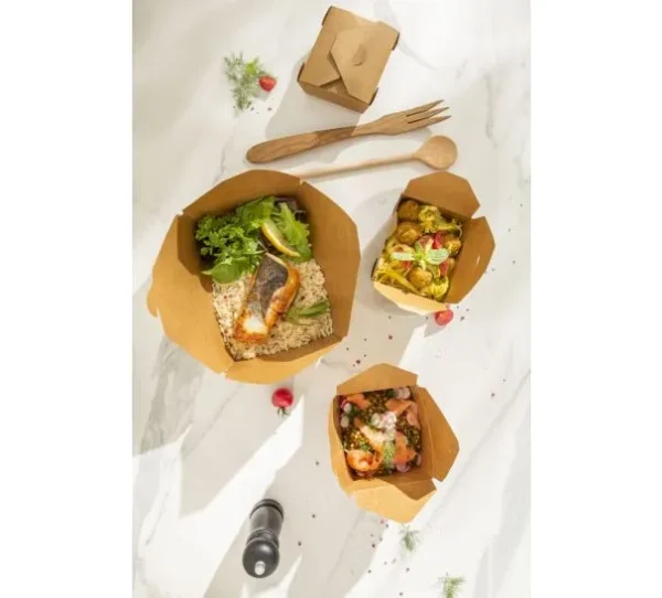 Les Food Box kraft brun 1350 ml sont conçues pour offrir une solution hygiénique, pratique et écologique pour la vente à emporter de plats et préparations plus généreuses.